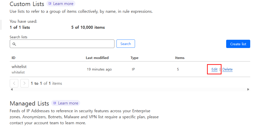 list 그룹 생성이 완료되면 Edit 버튼을 클릭합니다.