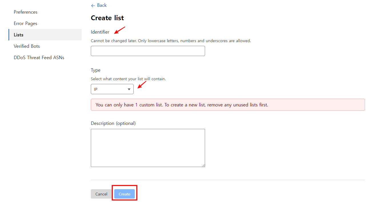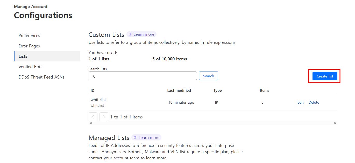 저는 이미 등록해 놓은 list가 있는데 없으신 분들은 Create list 버튼을 클릭해 주세요