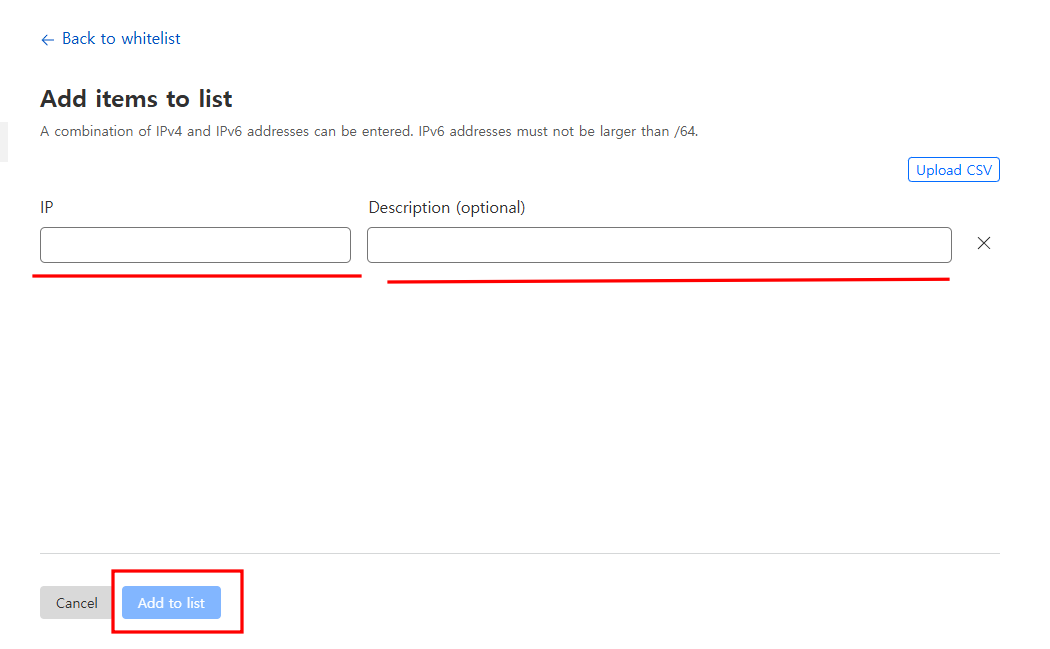 접속 허용할 ip를 입력해 준 뒤 add to list를 클릭해 주세요.